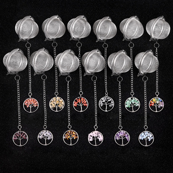 Piedra curativa hecha a mano, árbol de la vida, bola de acero inoxidable, colador de té de malla, amatista, cuarzo rosa, cristal, árbol, Infusor de té de la vida